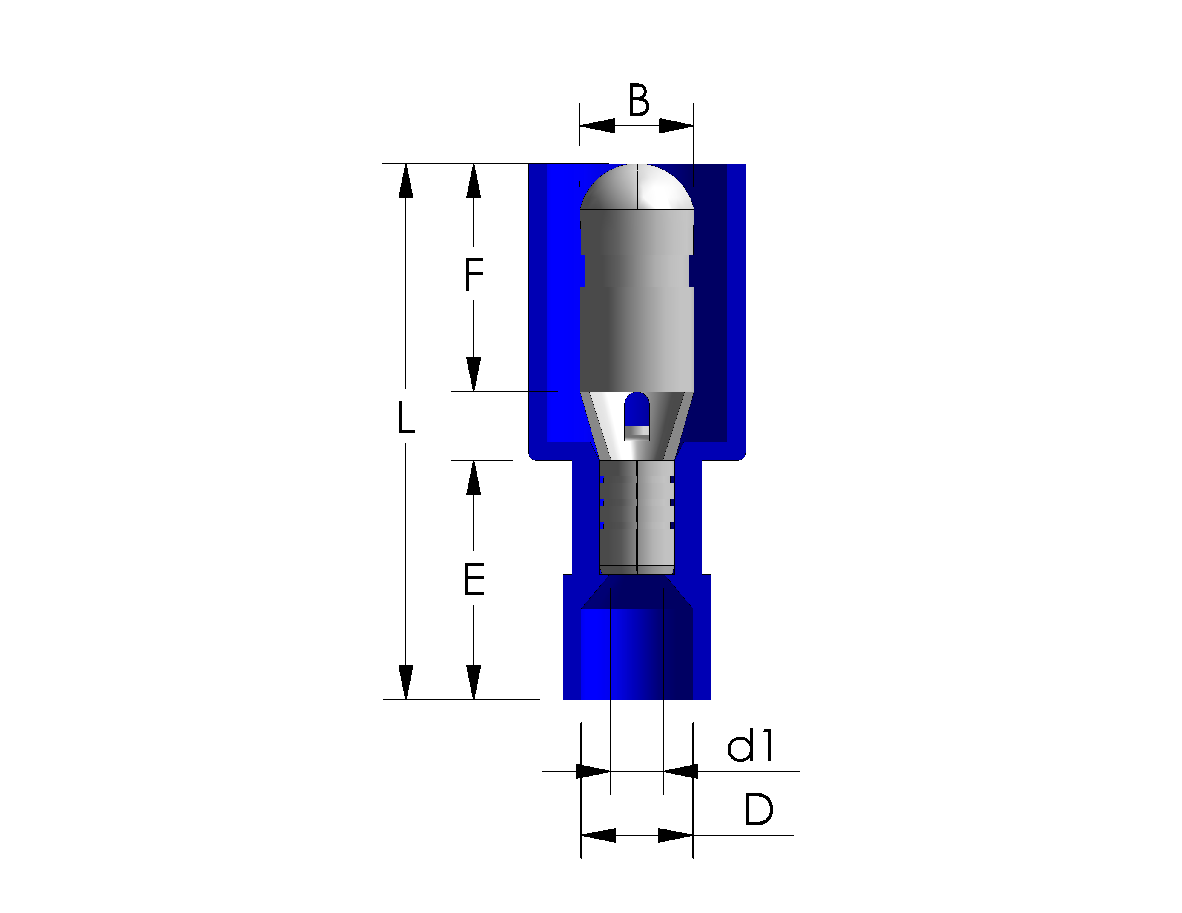 | WIRE RANGE AWG / mm² | ITEM NO. | UL | B (mm) | F (mm) | L (mm) | E (mm) | D (mm) | d1 (mm) | t (mm) |